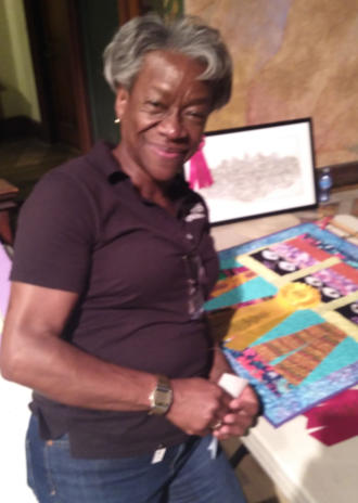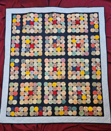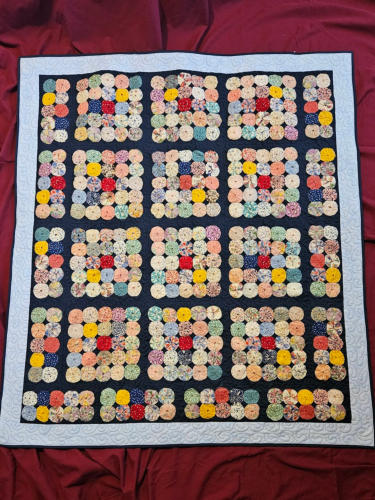 A coleague recently gave me some yoyo pieces and commissioned a quilt for his relatives. Here is the piece